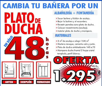 Muebles de Cocina frente de 4 metros Granito Nacional Electrodomésticos -Vitrocerámica -Horno Inox -Campana extractora -Frigorífico Fregadero Inox Azulejos 30m2 (15€) Pavimento 10m2 (15€) Albañilería Fontanería