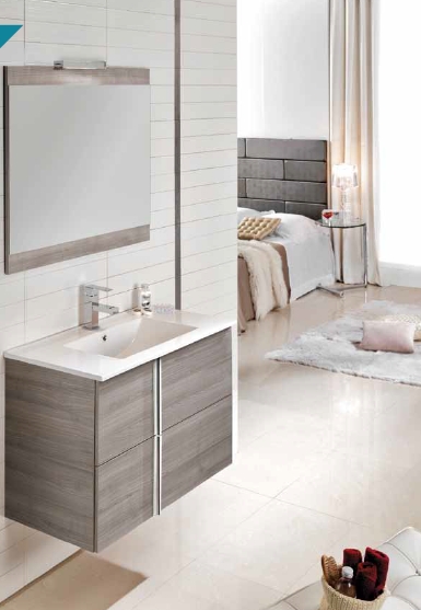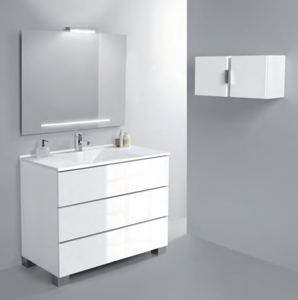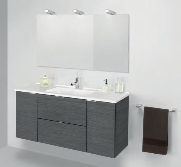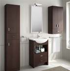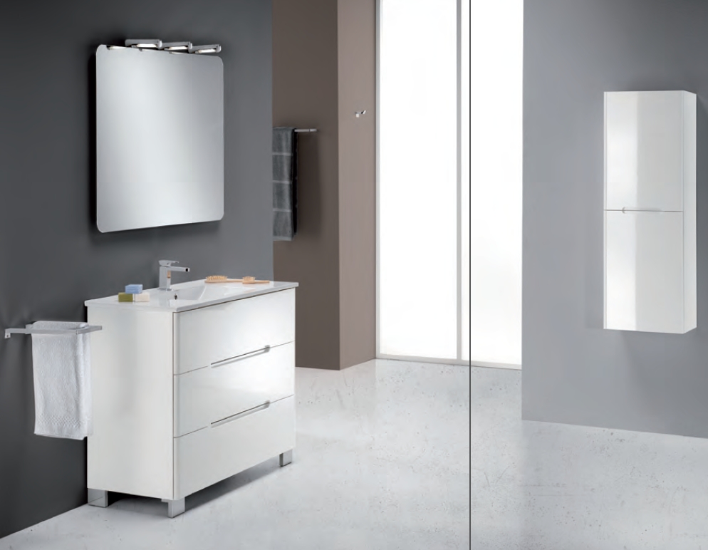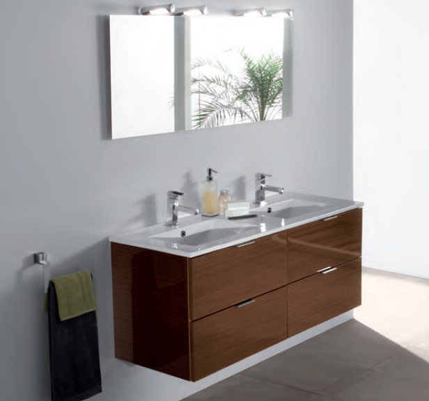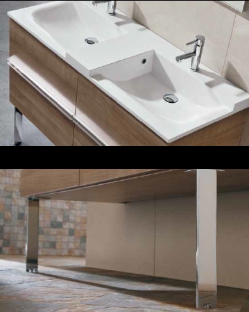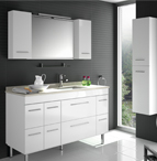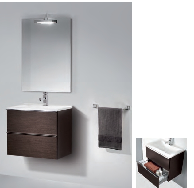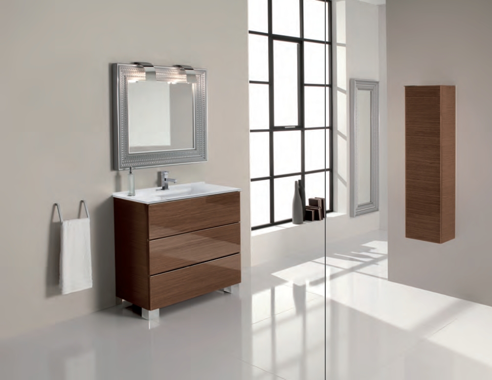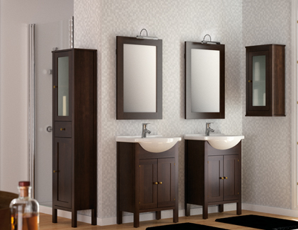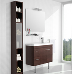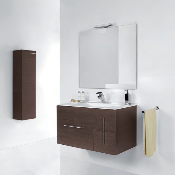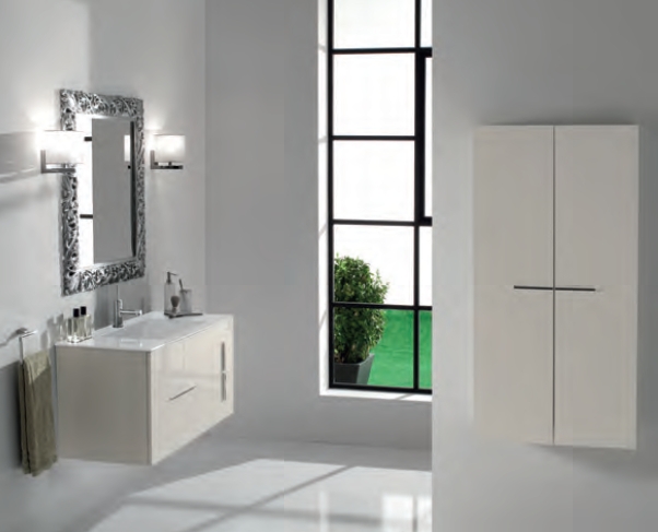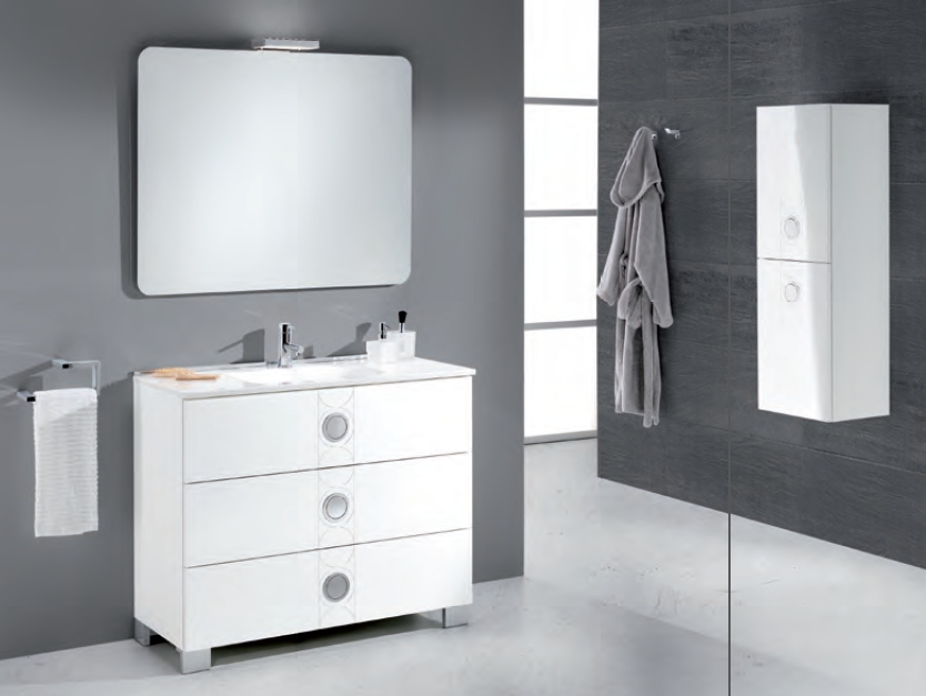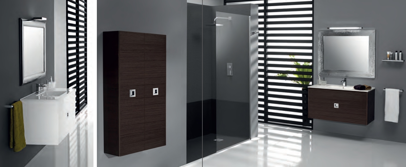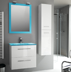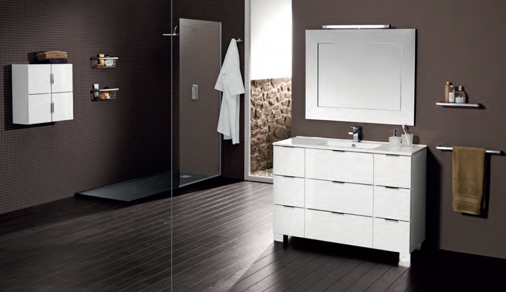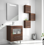 Muebles de baño suspendidos o con patas, en diferentes colores y medidas con armarios a juego.