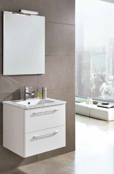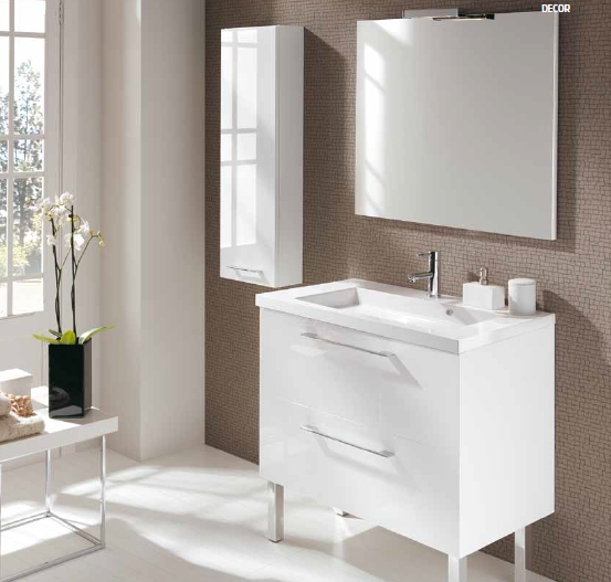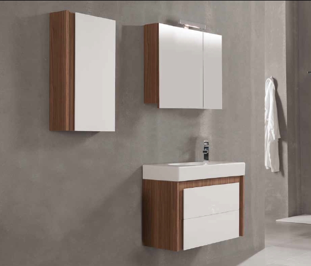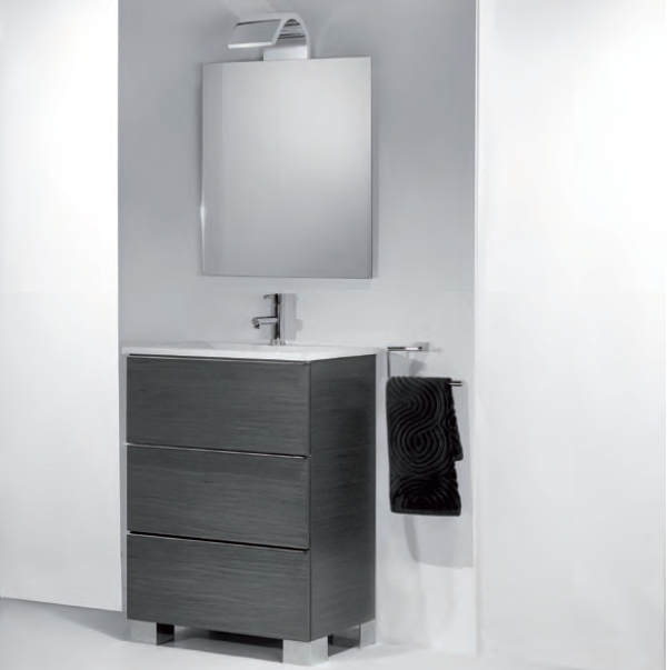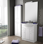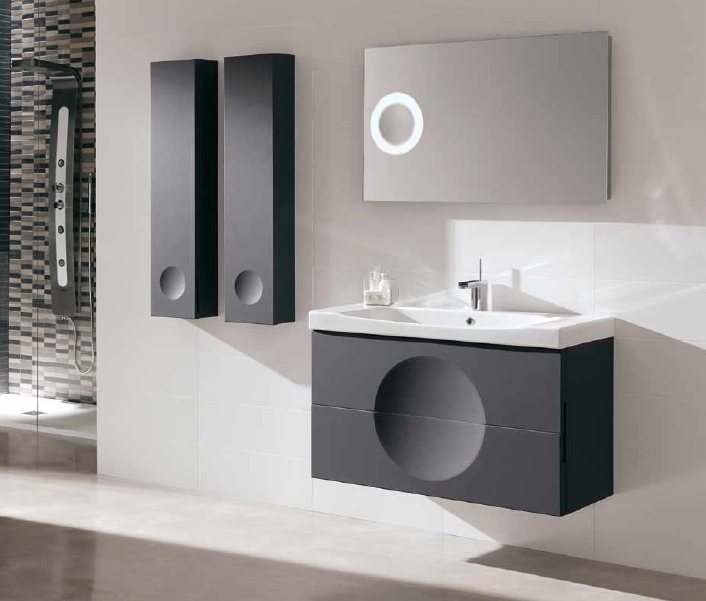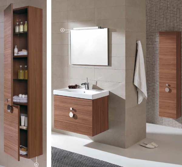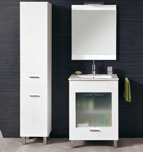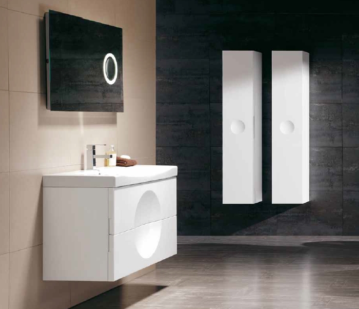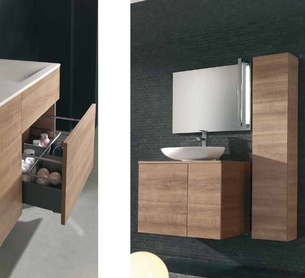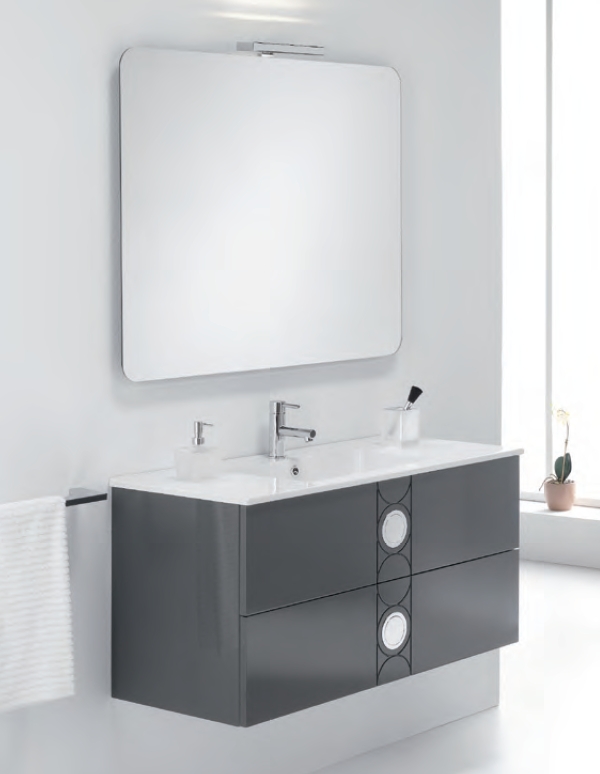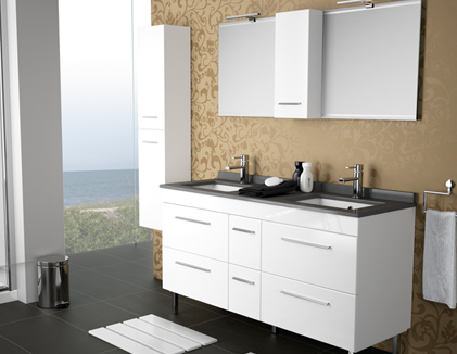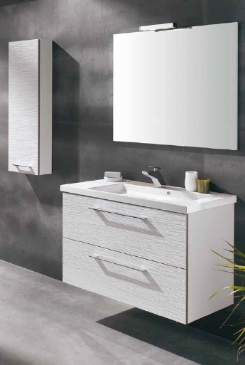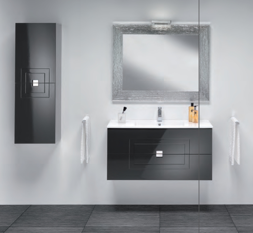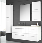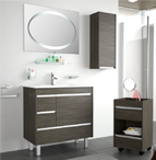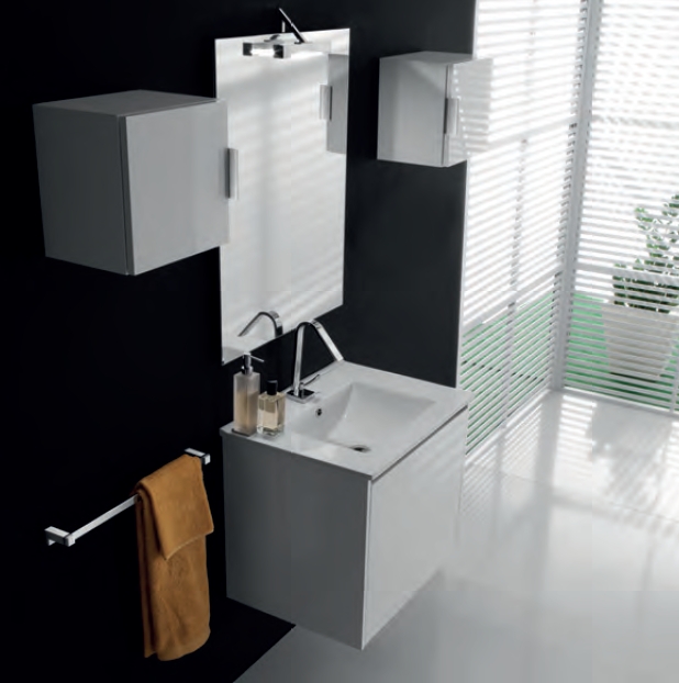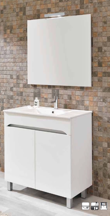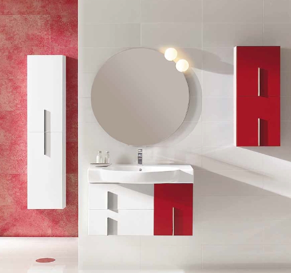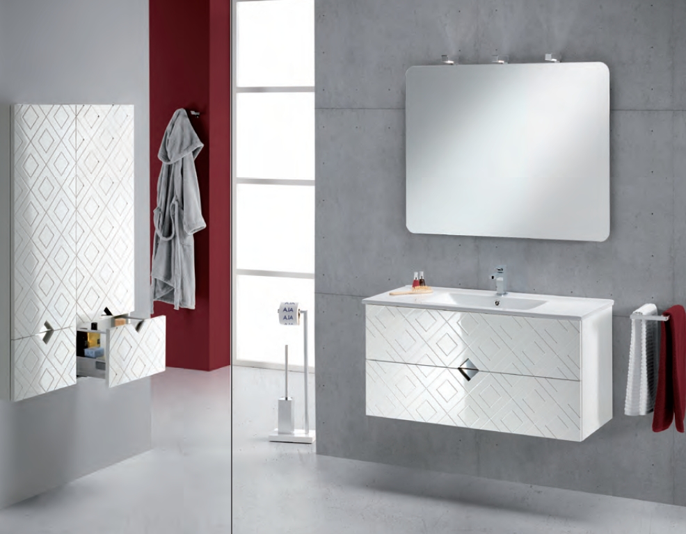 Muebles de baño suspendidos o con patas, en diferentes colores y medidas con armarios a juego.