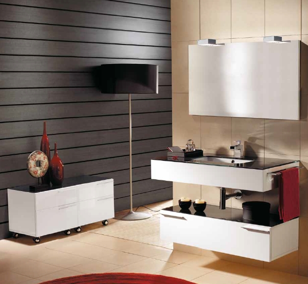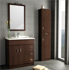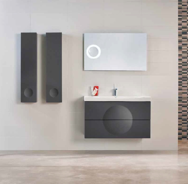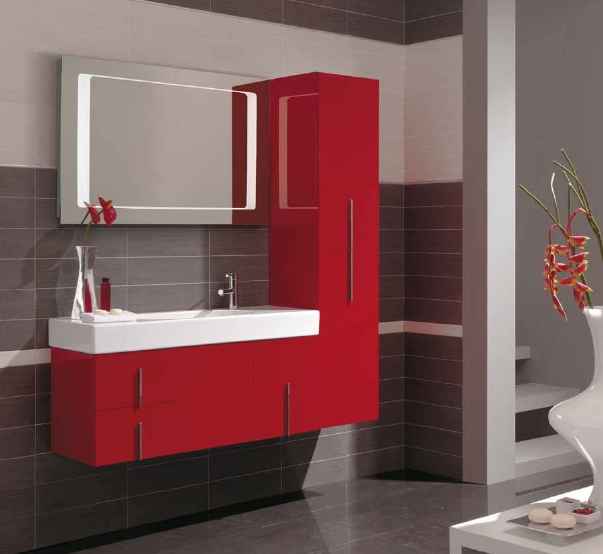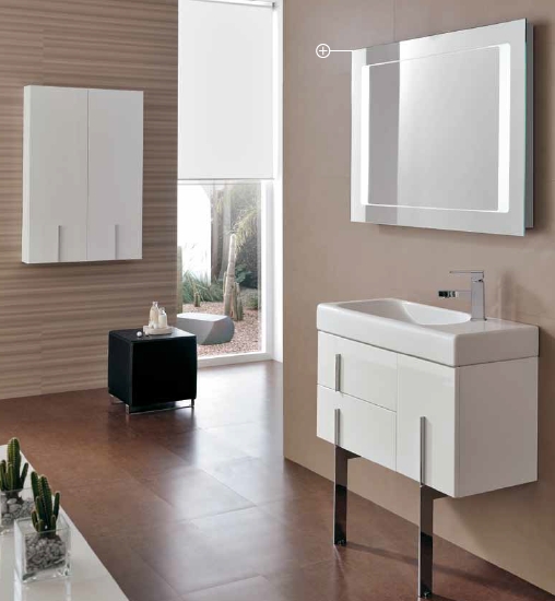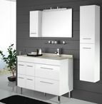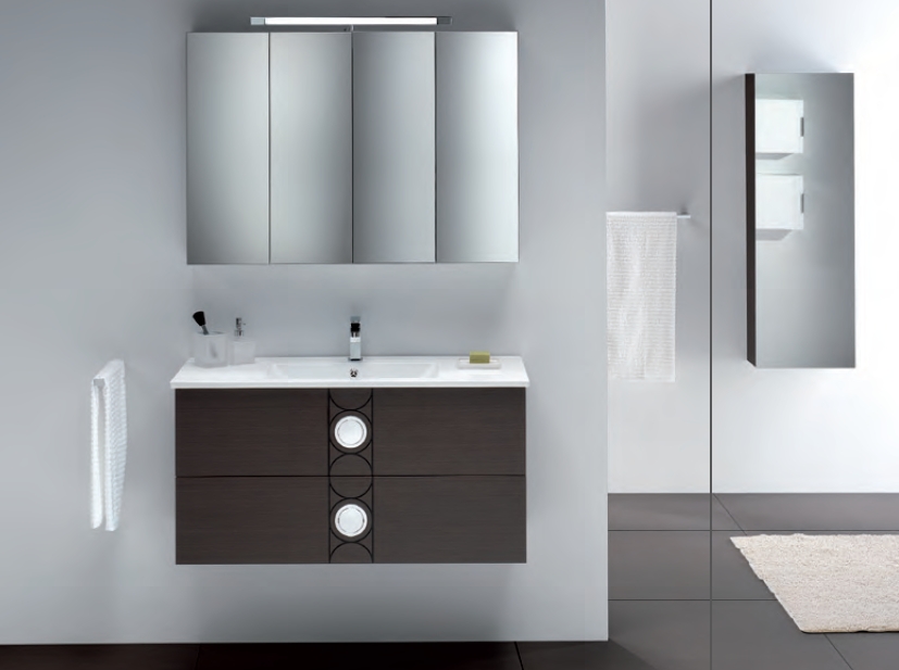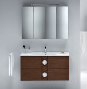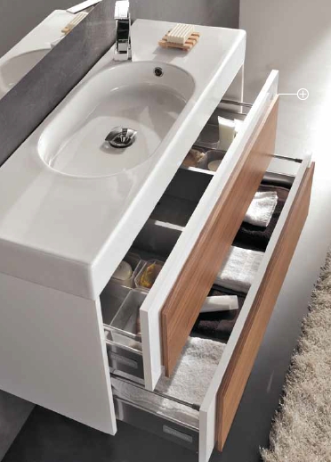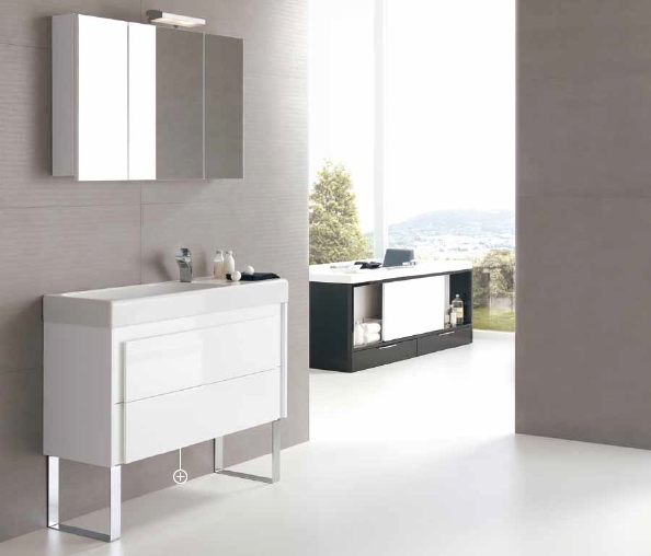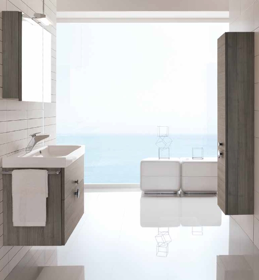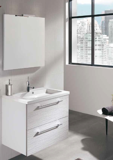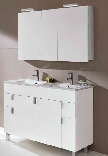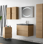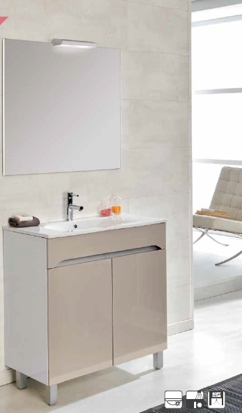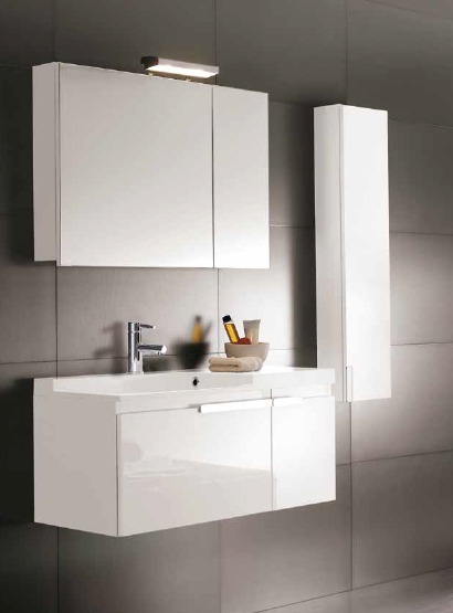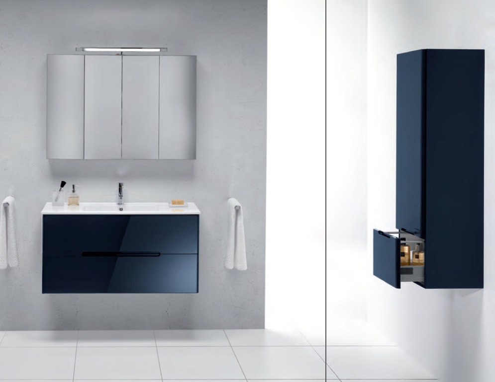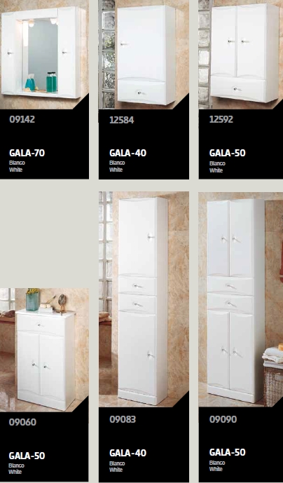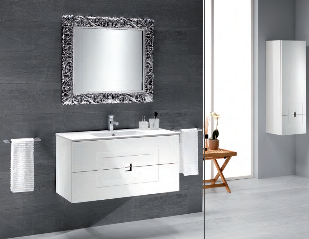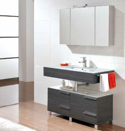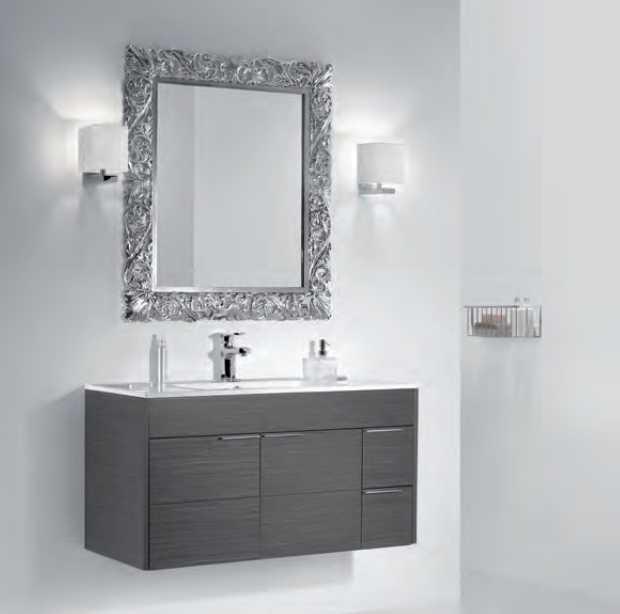 Muebles de baño suspendidos o con patas, en diferentes colores y medidas con armarios a juego.