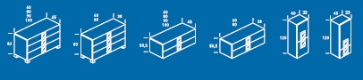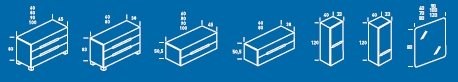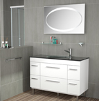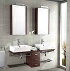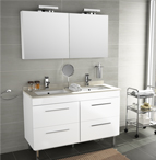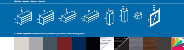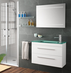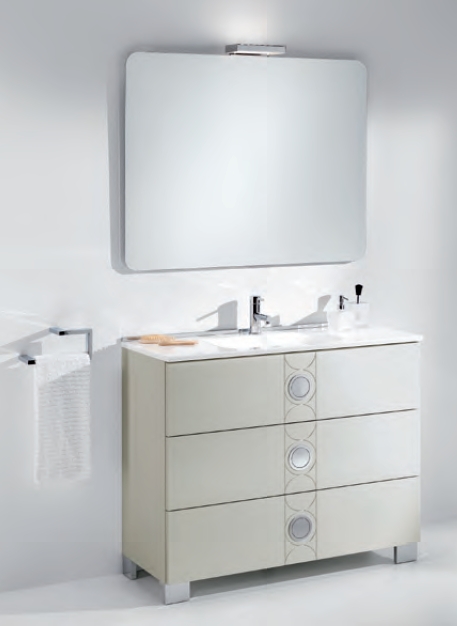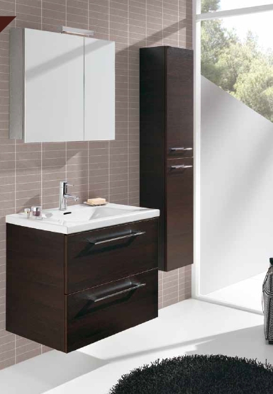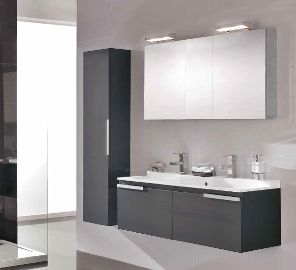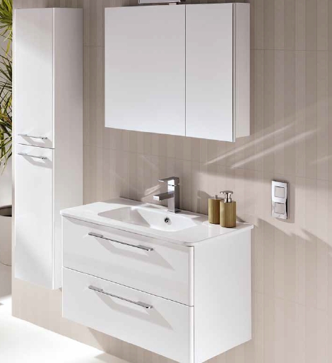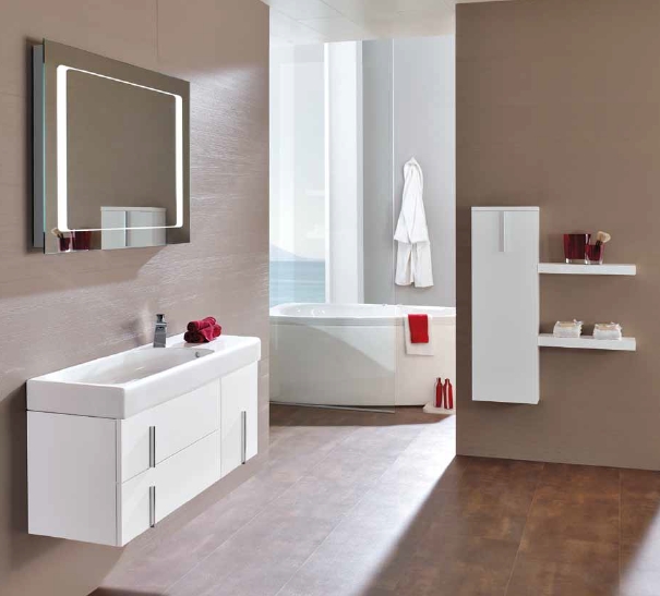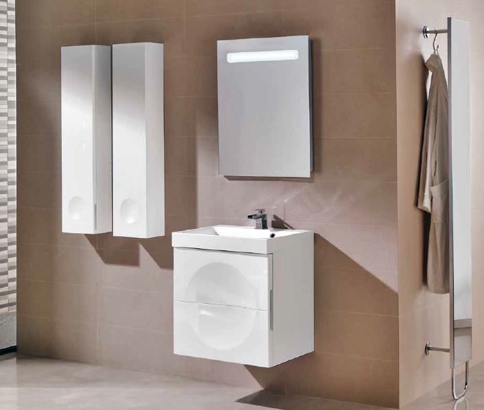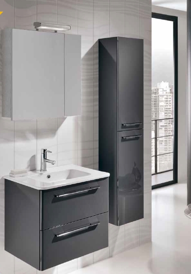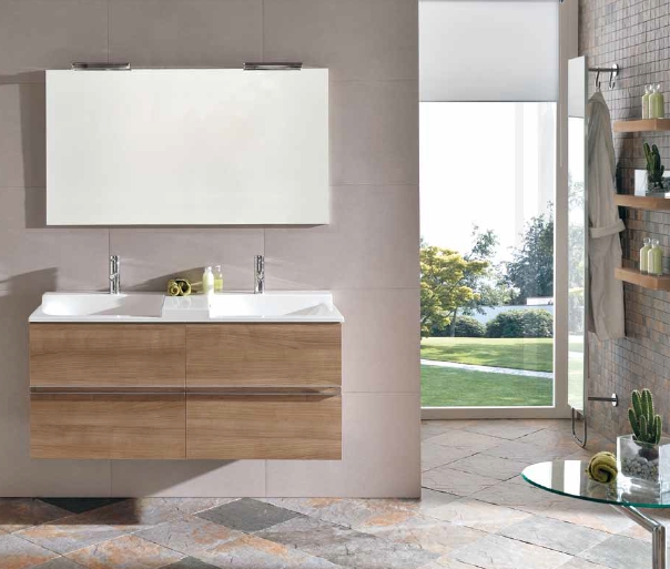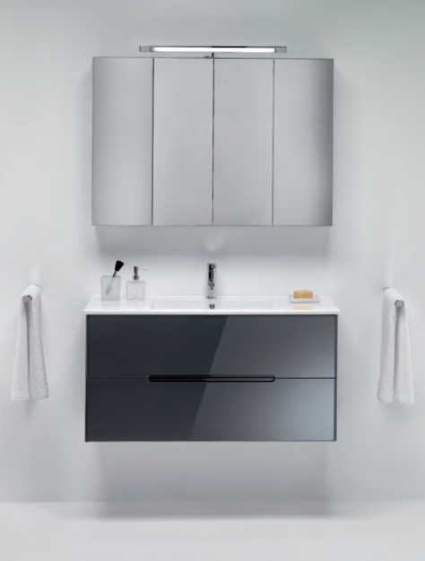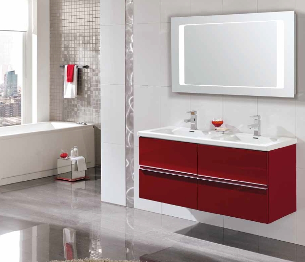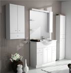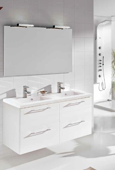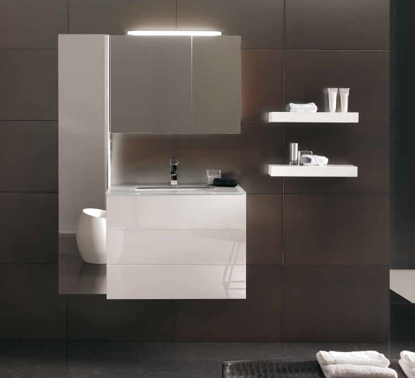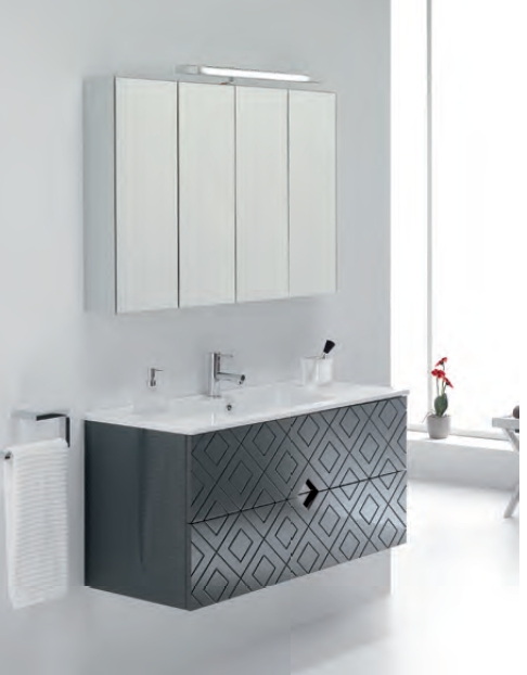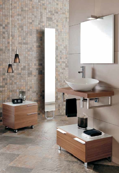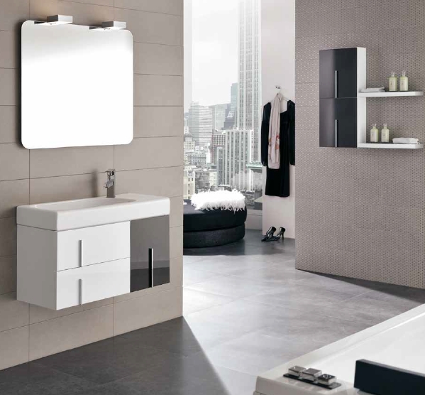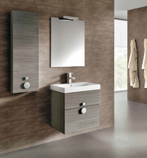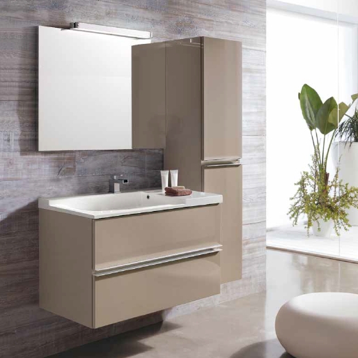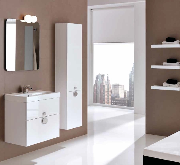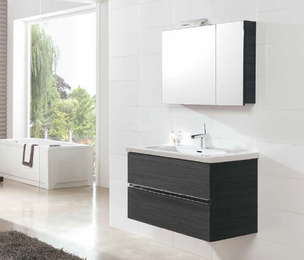 Muebles de baño suspendidos o con patas, en diferentes colores y medidas con armarios a juego.